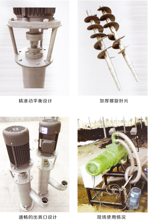 ●性能特点 抽粪泵具有安全性高,性能稳定,维护方便等特点。特别是在苛刻条件下,如夏季高温,冬季结冰,介质不均,鸡毛、秸秆纤维 粗大粘稠等条件下仍然可以正常工作。其结构简单,适用范围广,相对成本较低。
